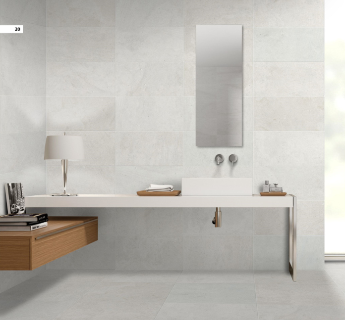 Phối cảnh gạch Keraben YABL sau khi ốp tường cho nhà vệ sinh vô cùng hiện đại, thanh lịch.